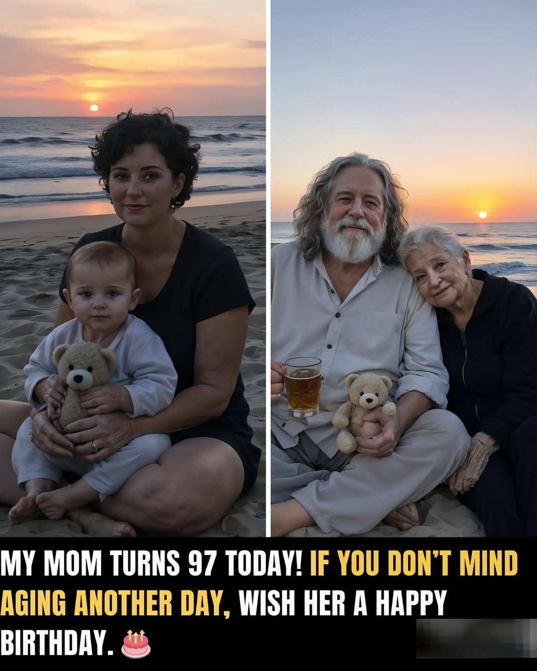 #97thBirthday #MultiGenerationalLove #FamilyForever #SunsetCelebration #GoldenYears #AgingWithGrace #BeachFamilyMoment #LoveAcrossGenerations #InspiringLife