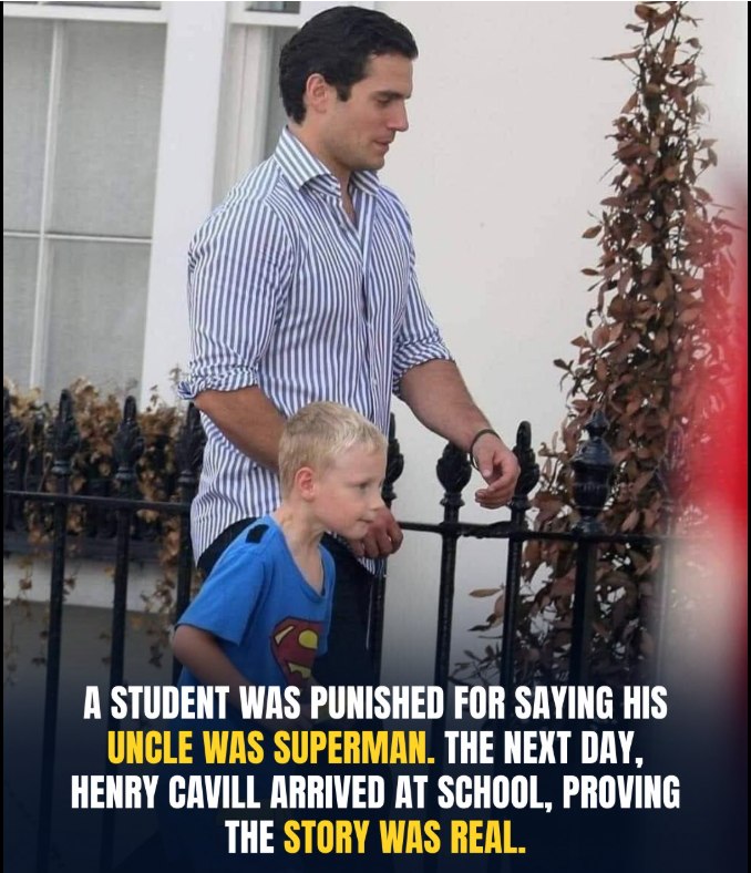 The next morning, the child returned to school with his uncle. There was no cape, no dramatic entrance, no announcement meant to prove a point. Just Henry Cavill standing quietly at the school gate, ordinary and calm, holding space rather than demanding attention. Reality arrived without spectacle. It didn’t argue. It didn’t explain. It simply existed.