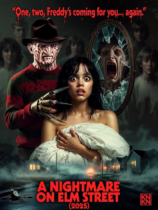 🩸 Synopsis: One, two, Freddy’s coming for you… In this imagined reboot/legacy sequel, a new generation of Elm Street teens discovers the terrifying truth: sleep is no longer safe. Jenna Ortega stars as a haunted young woman plagued by visions of a burned, bladed killer who hunts in dreams. As the body count rises in the real world, she must confront the vengeful spirit of Freddy Krueger (Robert Englund returning in chilling glory). Blending psychological horror, brutal kills, and dream-world surrealism, this concept promises a fresh nightmare where reality and fantasy bleed together. Don’t fall asleep… or do — if you dare. 🔥🔪💤🩸