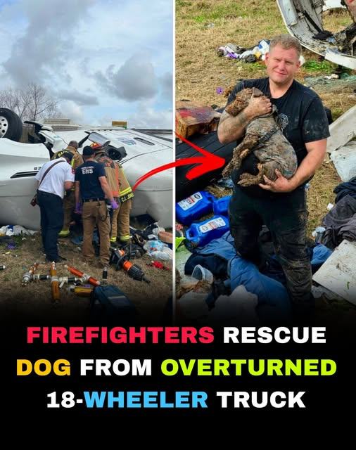 Just when it seemed the rescue mission was complete, the firefighters made another painful discovery. Inside the crushed cab, a frightened dog was still trapped, shaking and helpless. The sight of the scared animal reminded everyone that this accident had more than one life at risk.