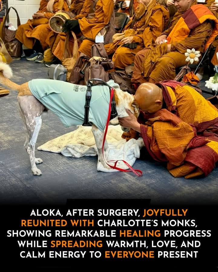 When Aloka was reunited with the venerable monks in Charlotte, something beautiful unfolded. His tail wagged with uncontainable joy, his eyes bright with recognition and peace. The bond between them—rooted in trust, calm energy, and compassion—was instantly visible. No words were needed. The connection spoke for itself. Even while still healing, Aloka gave something precious in return. 🙏🐶