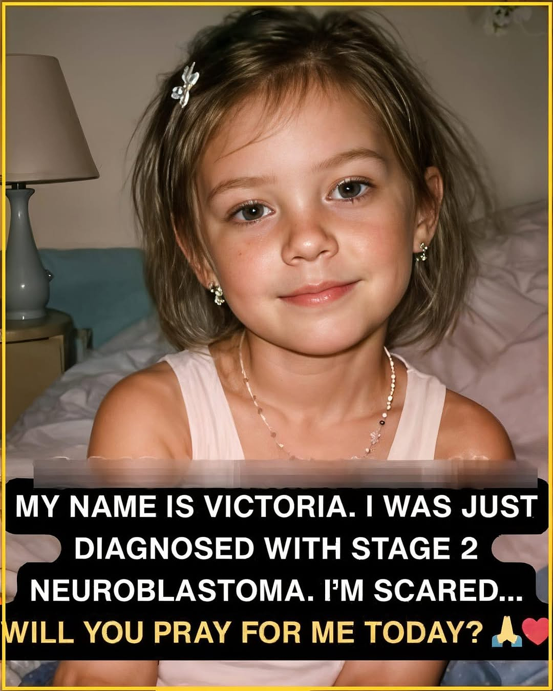 Those simple, gentle words carry no anger, no bitterness, no “why me?” Only trust. Only hope. Only a little girl who believes — with all her brave little heart — that if enough people care, if enough people pray, then maybe the monster inside her will get smaller, weaker, and one day disappear forever.