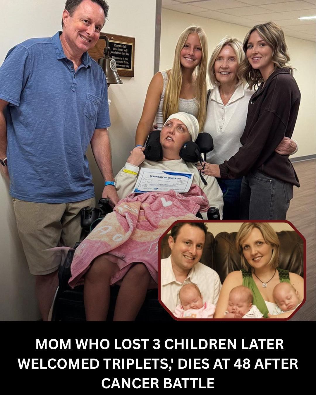 Years before her illness, Lori and her husband endured a tragedy that no parent should ever have to face: the devastating loss of their three young children. The pain was profound, the silence left behind unbearable. For many, such grief would be insurmountable. Yet Lori chose to keep going—not because the pain faded, but because love remained. She carried her children with her in memory, in spirit, and in every breath she took afterward.