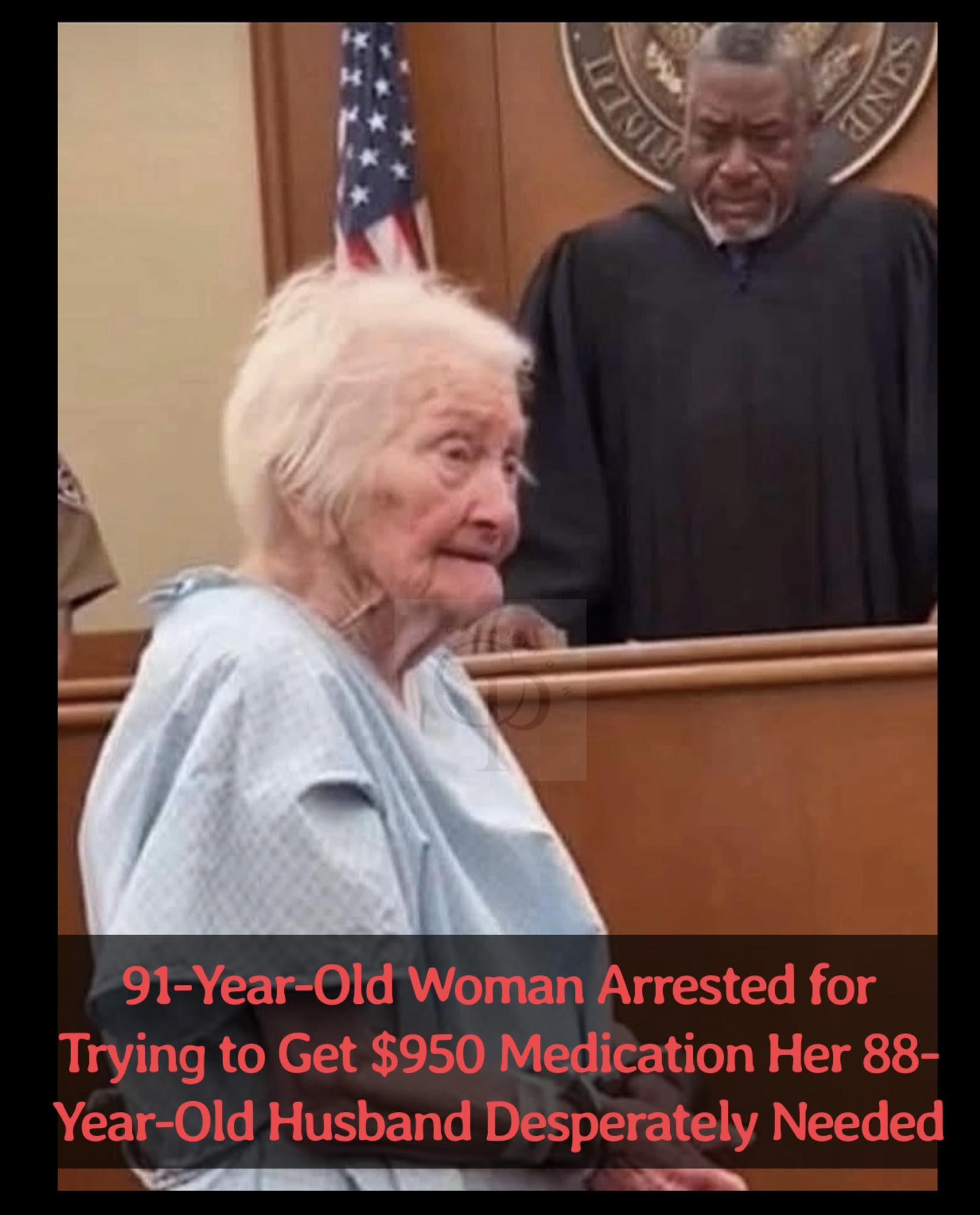 The courtroom went completely silent the moment she was brought in. She was 91 years old, frail and shaking, standing in a thin hospital gown that seemed far too light for the weight of what she carried. Her hands were cuffed in metal shackles. The charge read aloud was felony theft. But nothing about her looked like a criminal. Her name was Helen, and her crime was love. Helen had been married to George for 65 years. Sixty-five years of shared mornings, shared struggles, and shared heartbeats. George was now 88 and suffering from severe heart failure. His survival depended on daily medication — not optional, not negotiable. Miss it, and his heart could simply stop. The couple lived quietly on a fixed income, counting every dollar. Then life dealt them one final blow: their insurance lapsed. There was no backup. No savings to lean on.