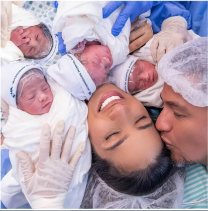 Now, that rhythm has changed 💕. The new tempo is softer, louder, messier, and infinitely more beautiful—set by lullabies, sleepless nights, and four newborns who have transformed love into something boundless 🍼🍼🍼🍼.
