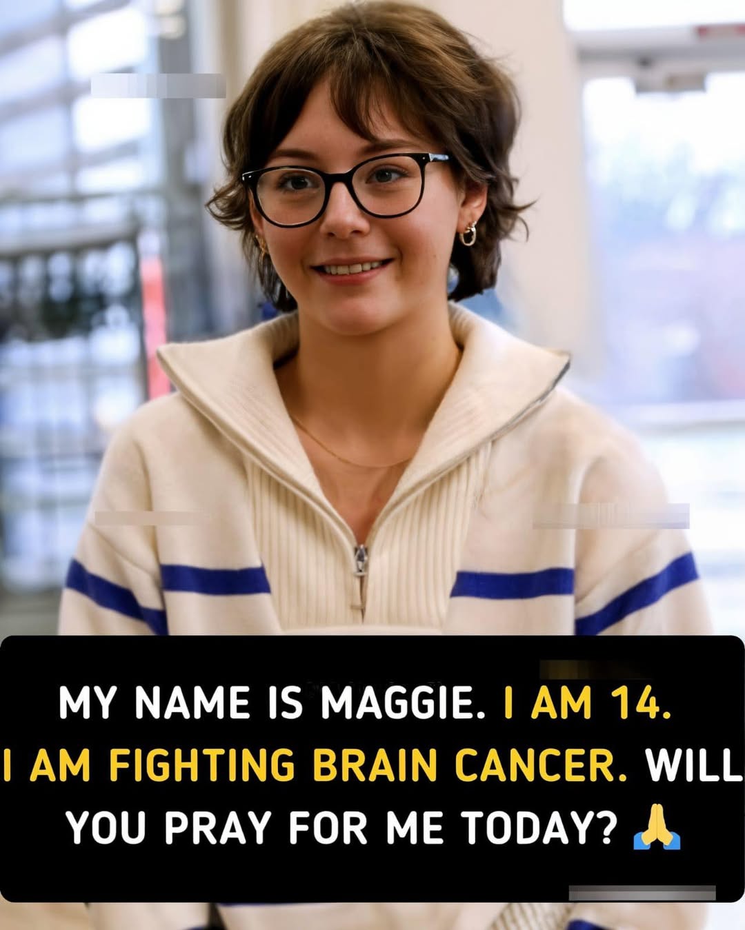 “My name is Maggie. I am 14. I am fighting brain cancer… will you pray for me today?”