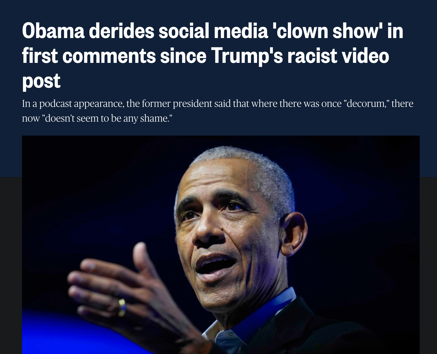 During the conversation, Obama referenced growing concerns over inflammatory political messaging, including a racist video Trump shared online that targeted both Obama and former First Lady Michelle Obama.