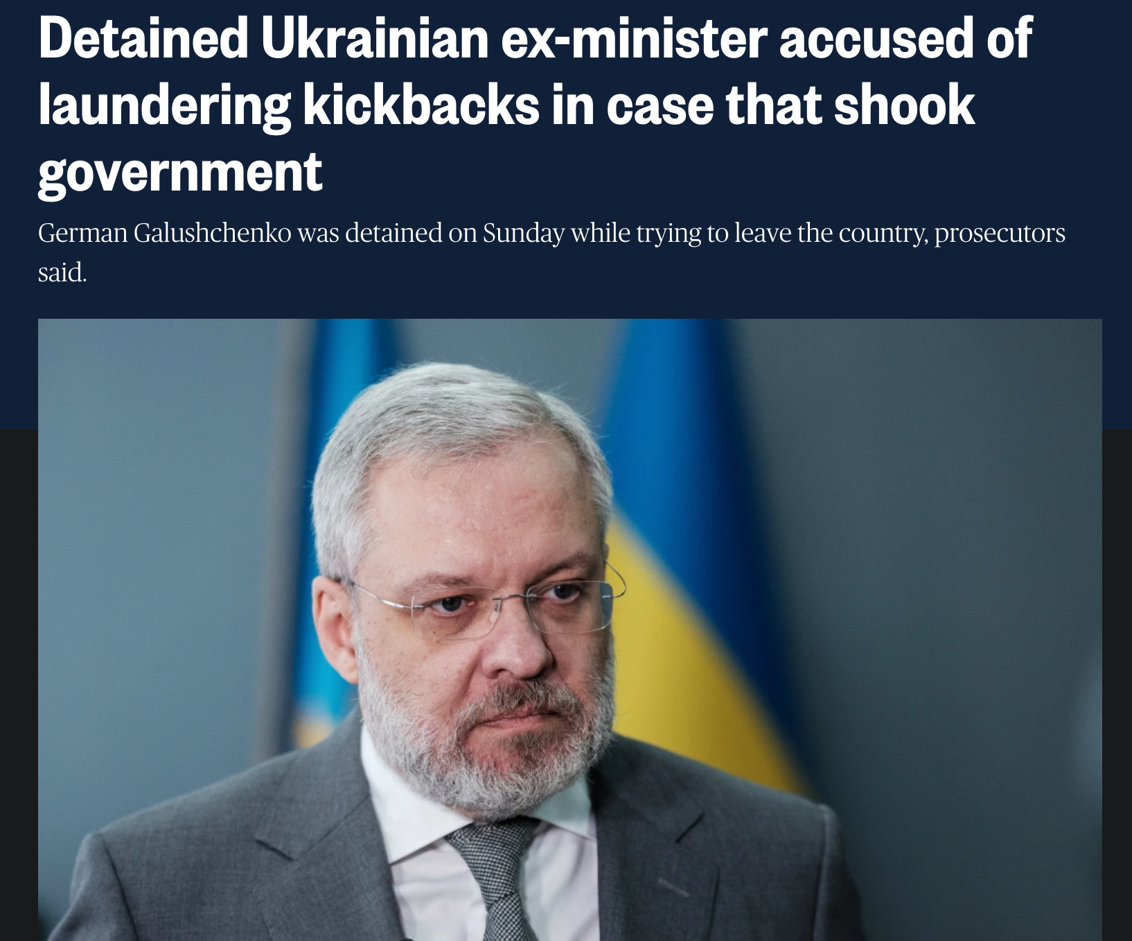 Ukraine’s anti-corruption authorities have accused former Energy Minister German Galushchenko of laundering millions of dollars in alleged kickbacks, one day after he was detained while attempting to leave Ukraine. 🇺🇦