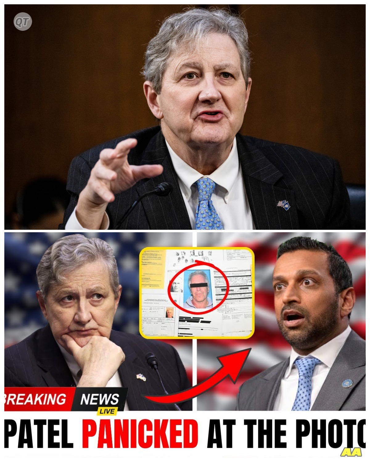 A fresh political firestorm has erupted after John Kennedy referenced what he described as “shocking photos” connected to the case of Jeffrey Epstein. The remarks, made during a tense exchange reportedly involving Patel, immediately reignited public attention around one of the most scrutinized legal scandals in recent history.