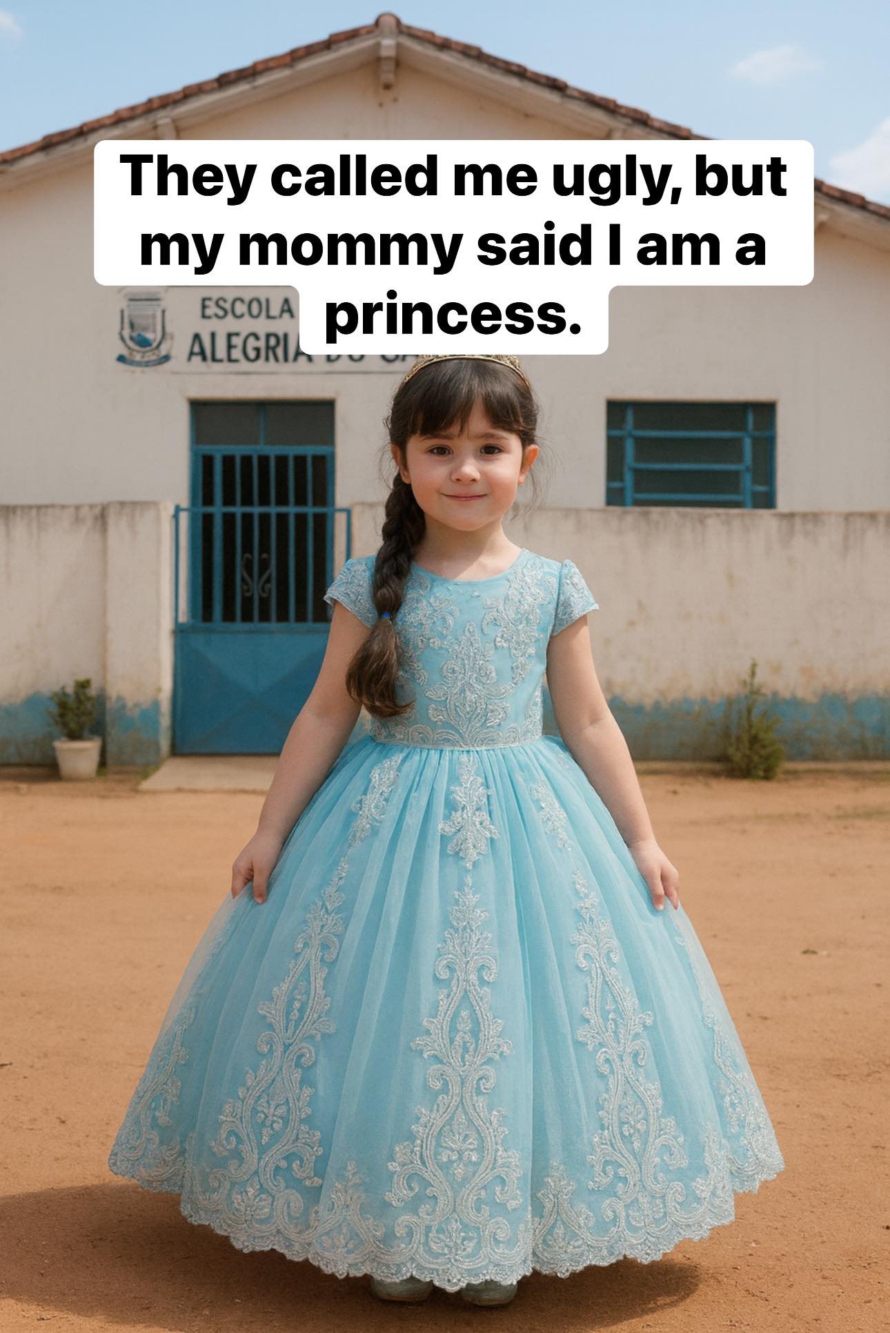 The next day, we turned that pain into power πͺβ¨. She chose her favorite blue gown, tiara perched perfectly on her head, her cheeks kissed with courage. Together, we walked back to that yard β not to show off a dress, but to show that love, confidence, and self-worth are stronger than cruelty π.