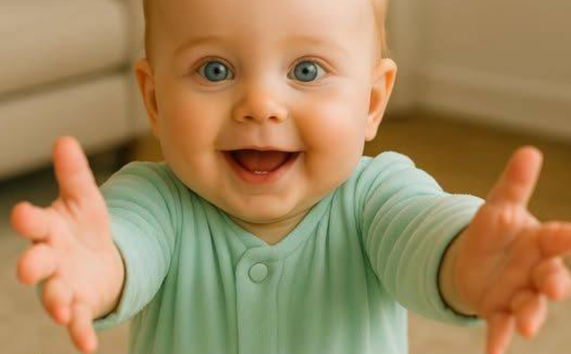 In the middle of exhaustion and quiet pain, there is still a small spark of tenderness. Imagine a tiny pair of arms that doesn’t care about your age, your past, or your mistakes. A baby who reaches out, smiles with two little teeth showing, and says with his eyes, “Come here, this hug is yours.” It’s a pure, unconditional gesture, free of judgment, expectation, or explanation.