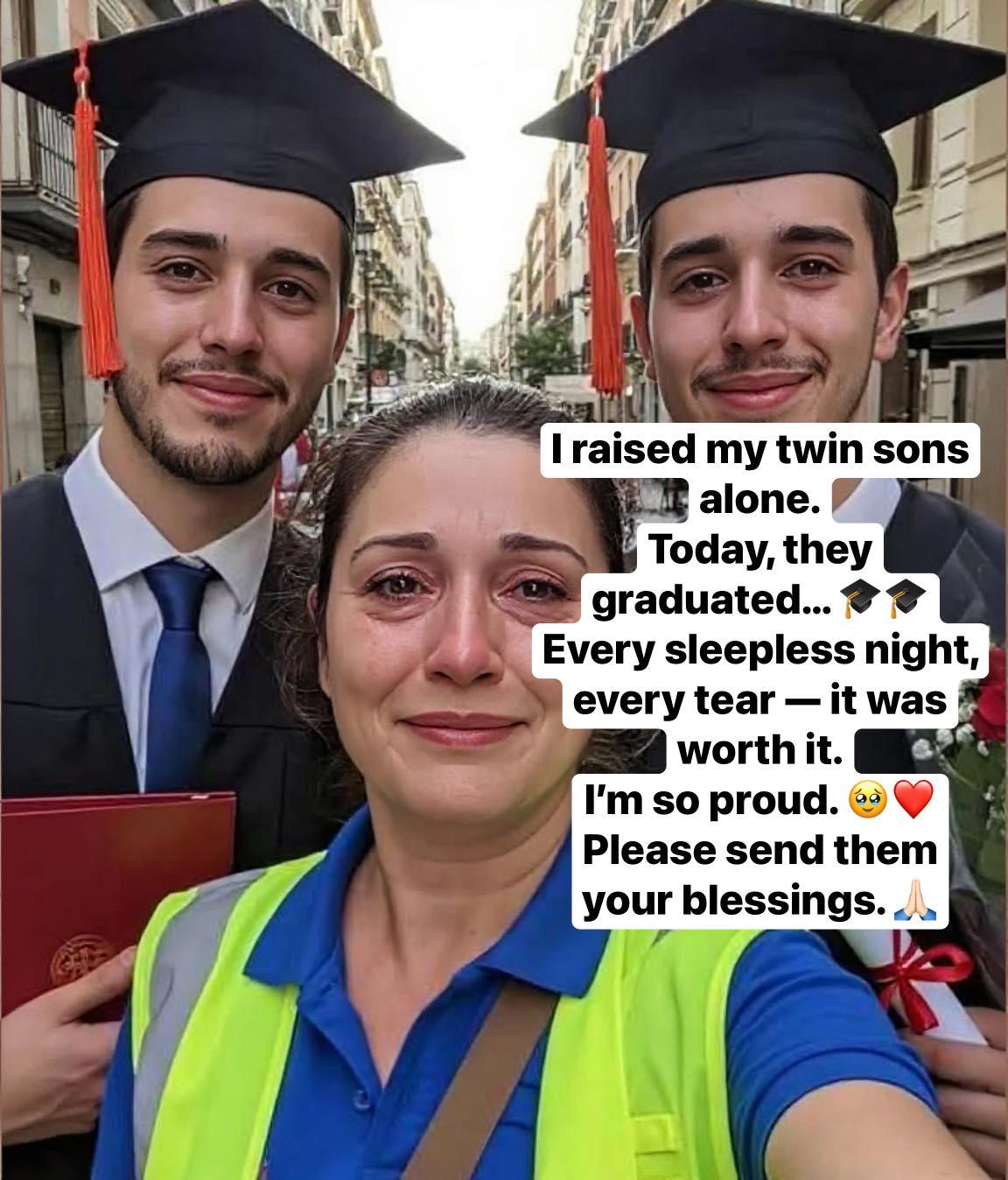 Today, I watch my twin sons walk across the stage, and my heart feels like it might burst with pride, love, and gratitude ππ«. I raised them both on my own, facing every sleepless night, every tear, every worry, and every sacrifice a mother could endure π₯Ήβ€οΈ. There were days I thought I couldnβt keep going, moments when doubt whispered that the challenges were too great, but love always spoke louder, guiding every step we took together ππ.