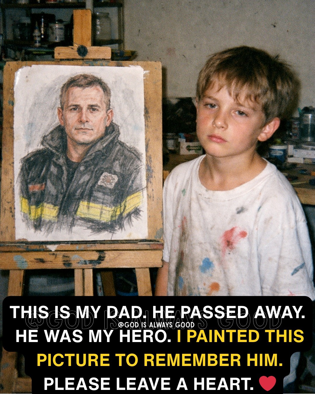 Today, in a quiet room touched by afternoon light, a child paused to remember his father π«. Not with words or grand gestures, but through the simplest acts β a brush in his hand, colors spilling across paper, each stroke a silent tribute to the man who shaped his world.