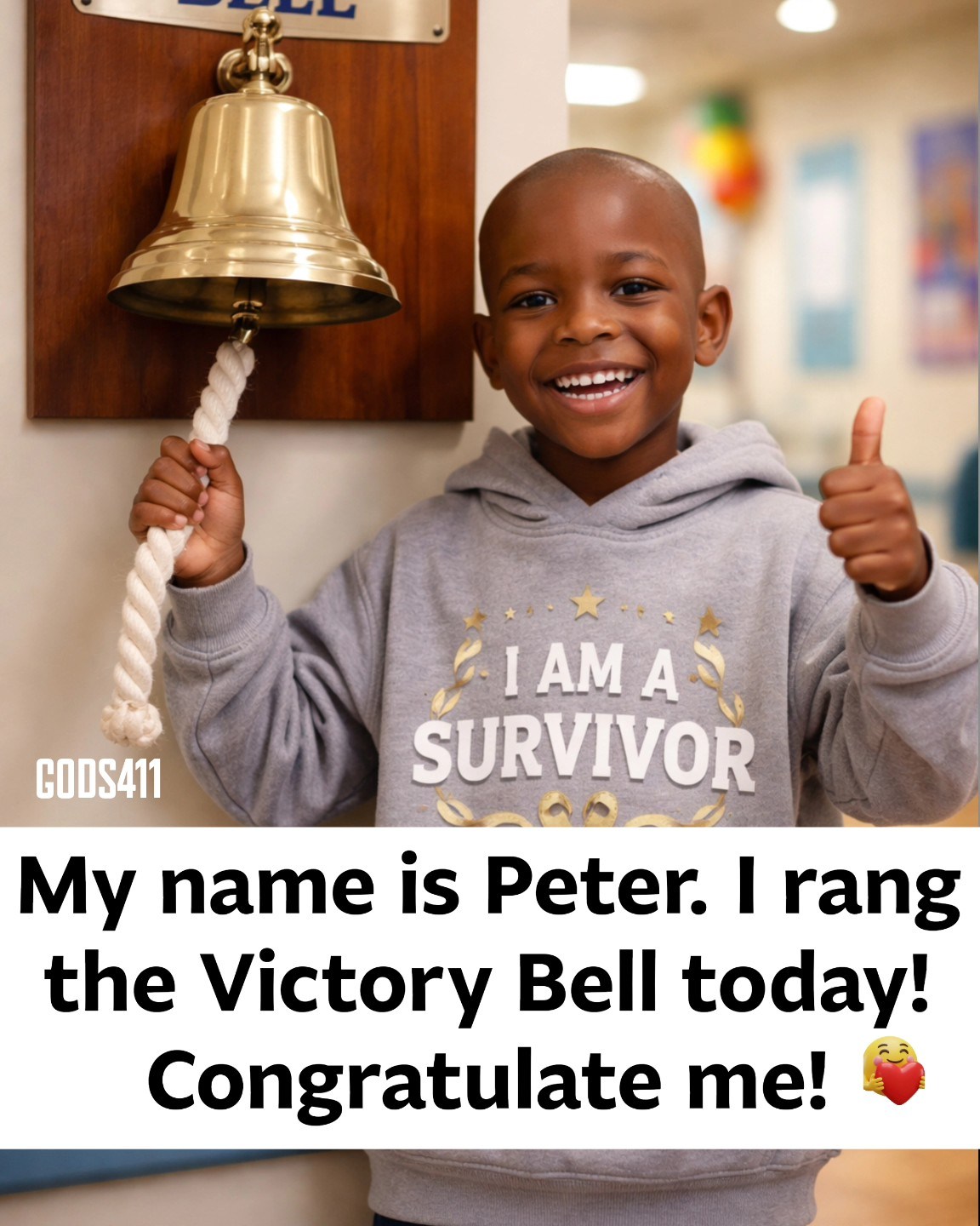 Today, at just 8 years old, Peterโs life reached a milestone that every parent dreams of but fears for every day ๐ญ๐. Today, he rang the Victory Bell ๐โจโa symbol not just of healing, but of hope, strength, and triumph over battles no child should ever face.
