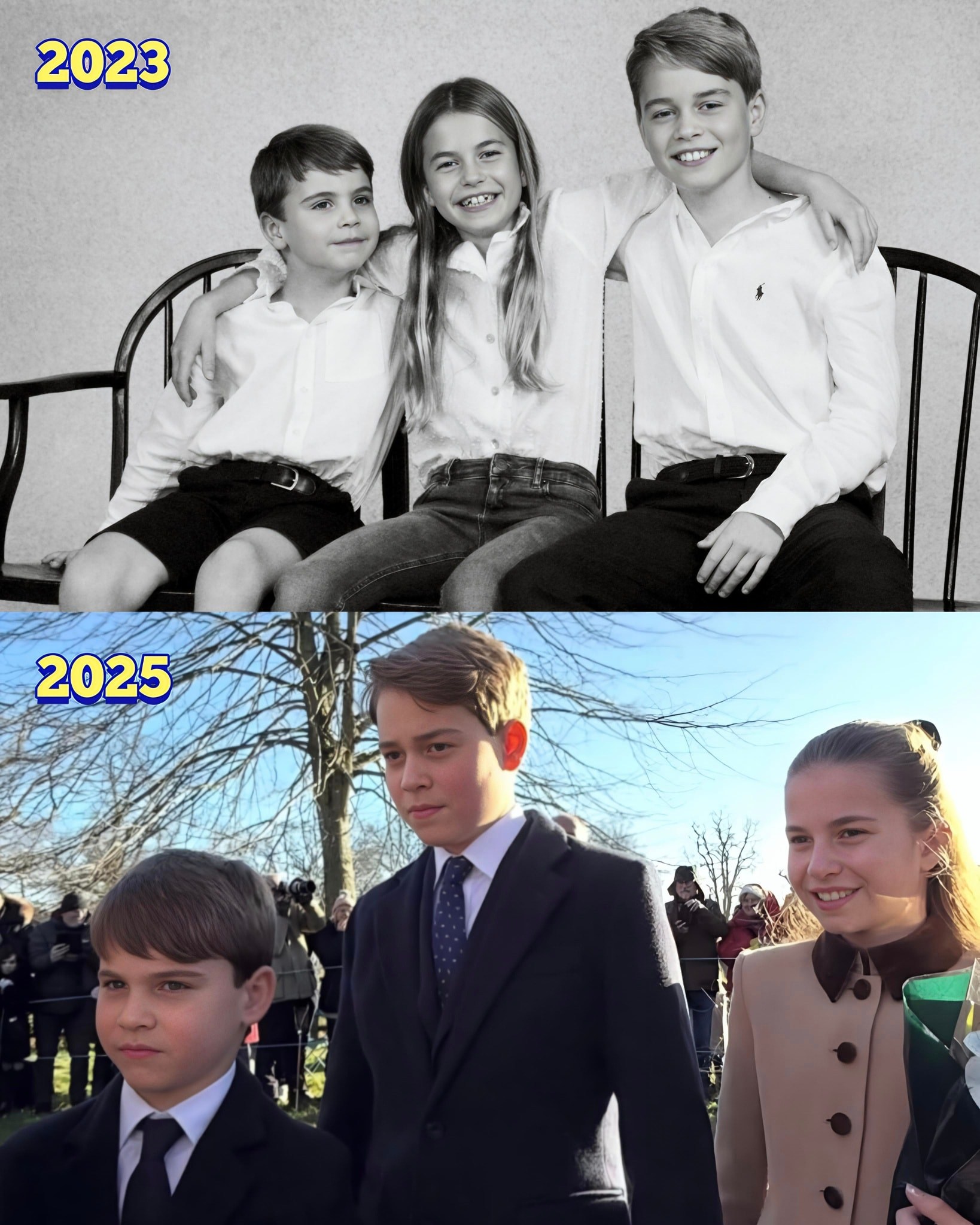 With each passing year, we see not only their individual personalities shining through but also the beauty of a close-knit family growing together ๐๐. Prince George exudes a confident and playful spirit, Princess Charlotte balances grace with a cheeky charm, and little Prince Louis brings endless giggles and energy to every scene. Together, they are a picture-perfect royal trio, reminding the world that family, love, and connection are timeless ๐จโ๐ฉโ๐งโ๐ฆ๐.