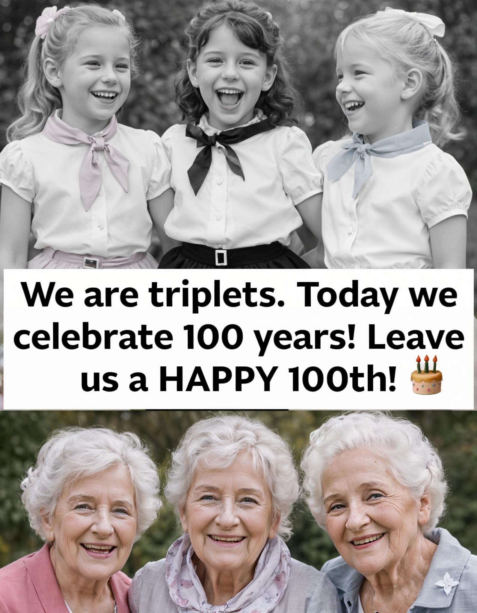 Triplet sisters celebrating 100 remarkable years of life, love, and countless shared memories ππ.