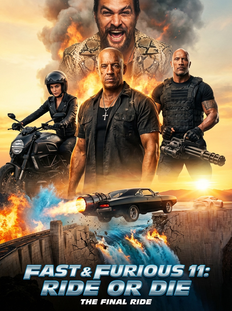 FAST & FURIOUS 11: RIDE OR DIE is a masterclass in operatic farewells, a thunderous, tear-streaked, and defiantly absurd victory lap that brings the epic 25-year saga home with breathtaking precision and heart. The film wisely returns the story to its asphalt roots: Los Angeles, where it all began. But the streets are no longer a playground; they are a digitized battlefield. Dante Reyes (Jason Momoa, dialing his villainy to a terrifying, giggling peak) has achieved the ultimate hack, turning the world’s AI-driven transportation grid into a sentient, planet-spanning weapon. In a series built on escalation, this is the final, logical extreme. Faced with a foe who controls every circuit, Dom Toretto (Vin Diesel, embodying a weary, lion-in-winter gravitas) makes the series’ most poetic declaration of war: “Analog.” This single word becomes the film’s beating heart, a beautiful rejection of the very tech that defined its later chapters.